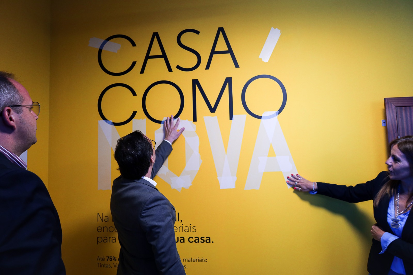 No espaço, transformado para que os inquilinos da Domus Social possam, a partir de agora, projetar de forma mais tangível a sua própria “Casa Como Nova”, estão expostas diversas amostras do conjunto de produtos disponíveis através do programa: tintas, aditivos e vernizes para interiores, pavimentos (flutuante e cerâmico) e portas interiores.