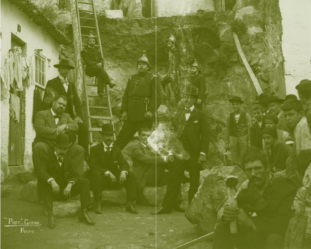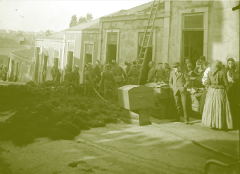 Bombeiros, higienistas e populares a desinfetar uma ilha durante o surto da peste bubónica. Câmara Municipal do Porto. Arquivo Histórico. [Identificador 300697]