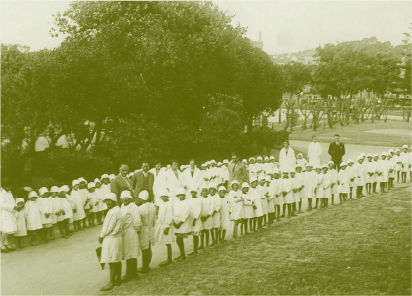 Grupo de crianças na Colónia Sanatorial Marítima da Foz do Douro criada em 1917 pela CMP. Câmara Municipal do Porto. Arquivo Histórico [Identificador 309879]