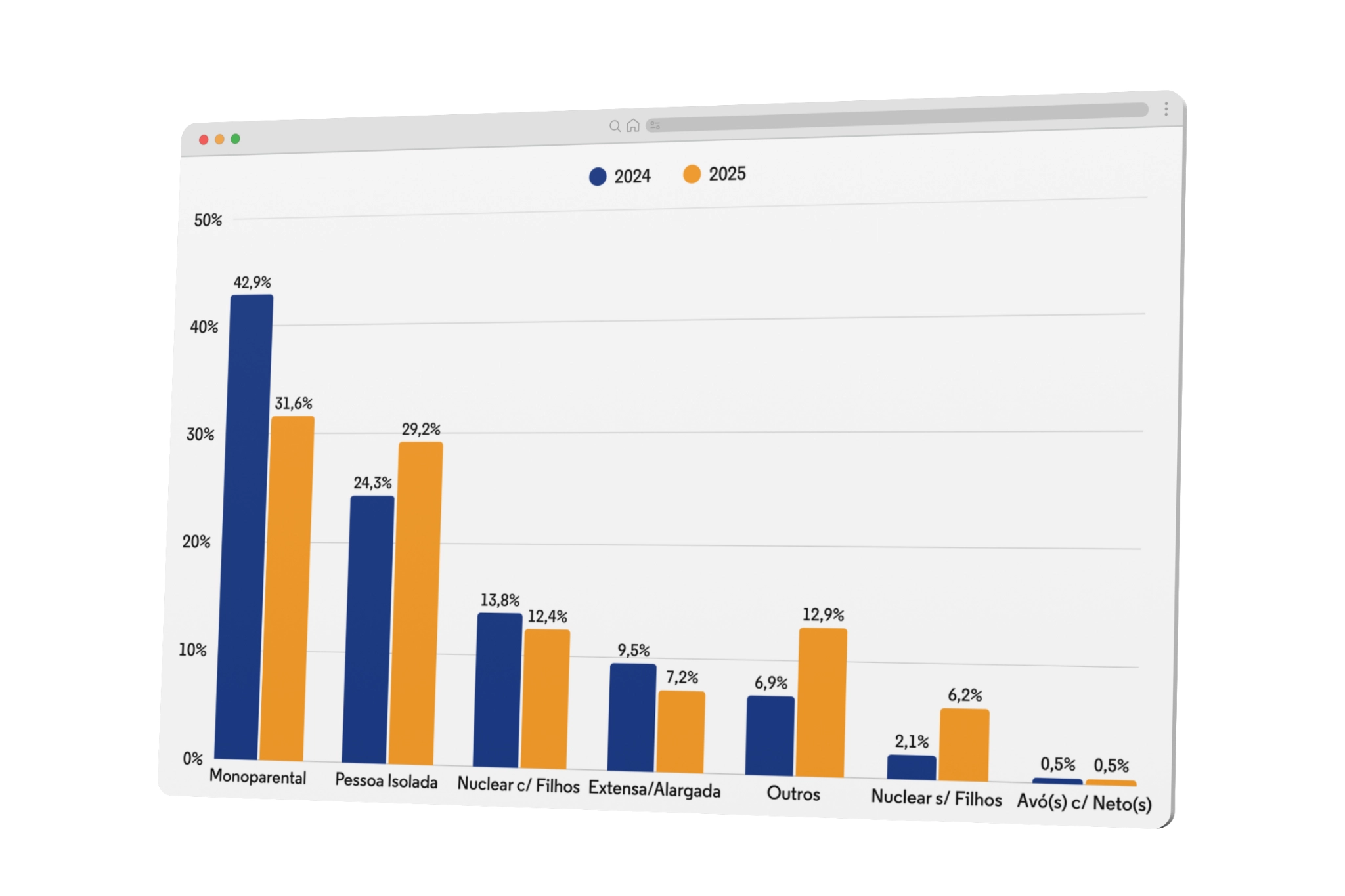 No que diz respeito à composição familiar, em 2024 prevalecia a procura de tipologias T2 e T3, mas em 2025 a maioria das atribuições passou a ser de T1, adequados a casais ou a isolados. A empresa municipal dá nota de que este ajustamento responde ao crescente perfil de famílias com um ou dois elementos, as quais representavam 26% em 2024 e 35% em 2025.