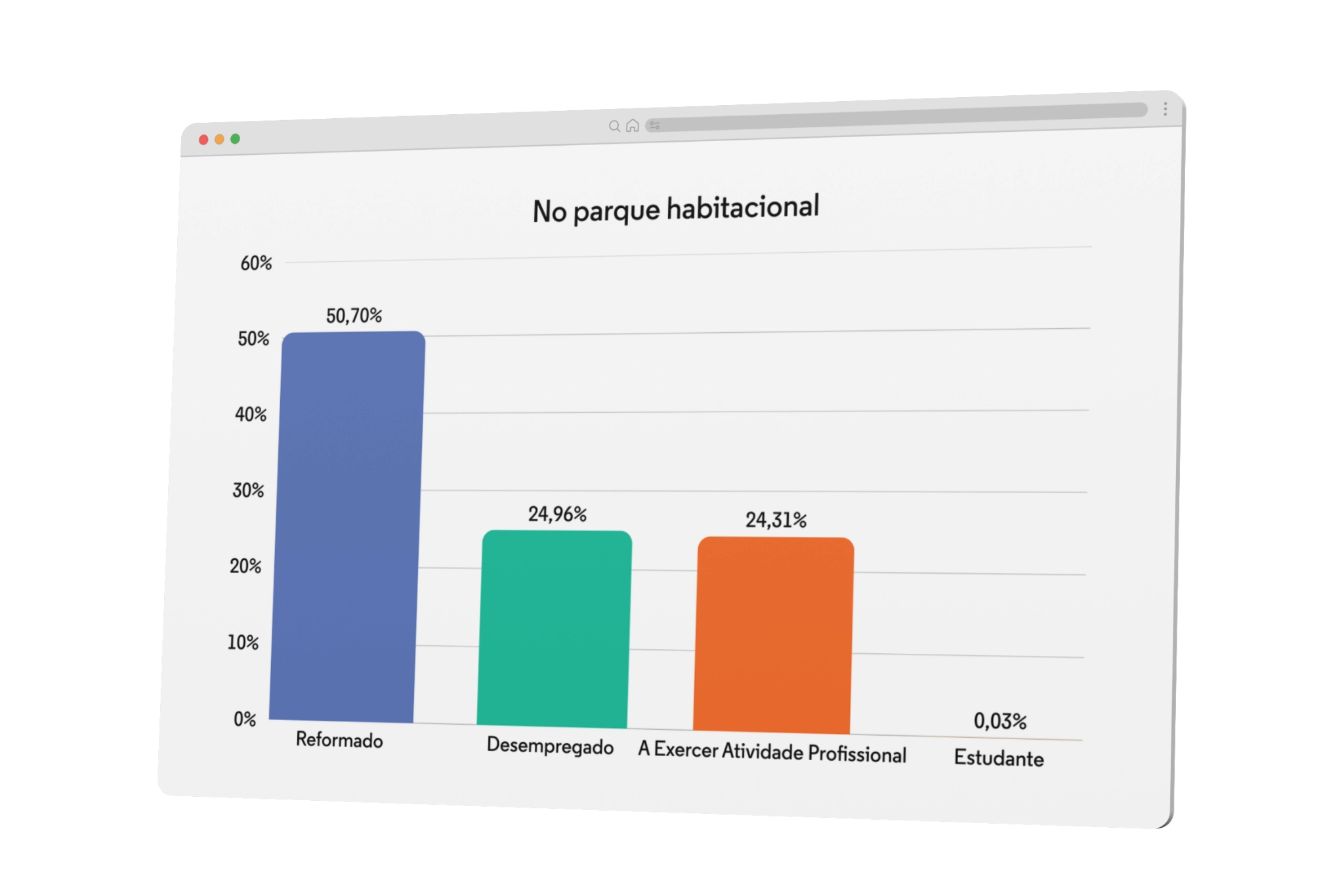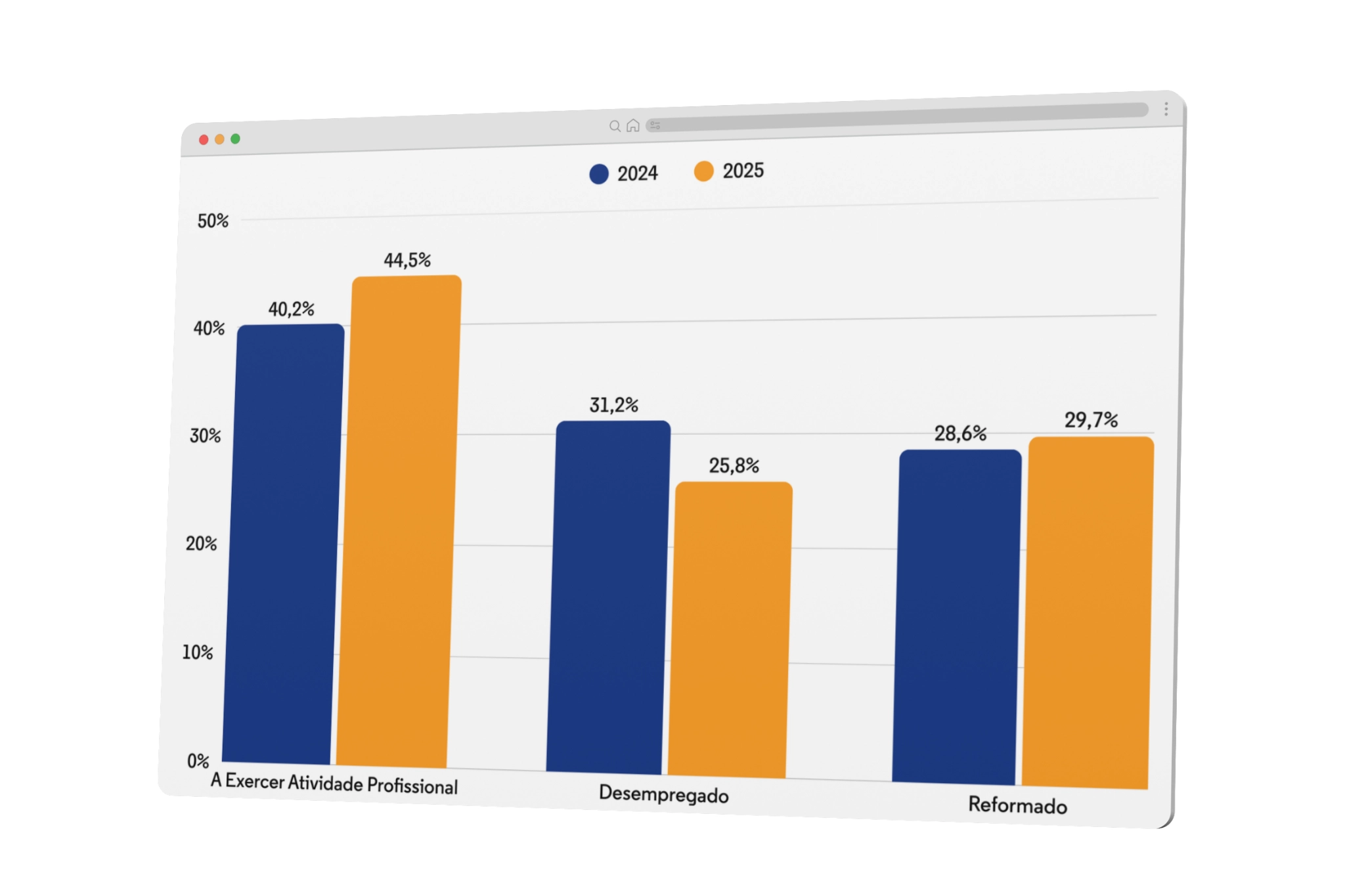 Ainda sobre a situação laboral, a empresa evidencia a referida diminuição do número de beneficiários desempregados - de 31,2%, em 2024, para 25,8%, em 2025 – e um crescimento da percentagem de arrendatários reformados.