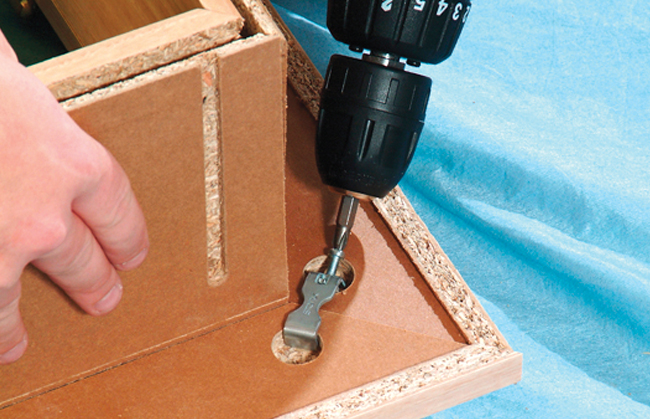 2. Aplicar a união metálica nos furos e apertar até ajustar a meia esquadria.